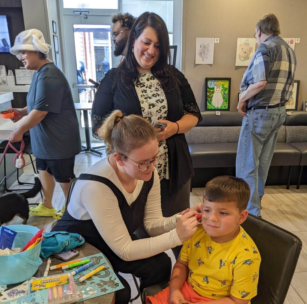 On June 24th, we unveiled the incredible 177 works of art featured in this year’s Pet Portrait FUNraiser by hosting an Art Show and Block Party with Katie Marinacci! Thanks to her sponsorship and support, our party had delicious snacks and refreshments, face painting, kids’ games, and more.