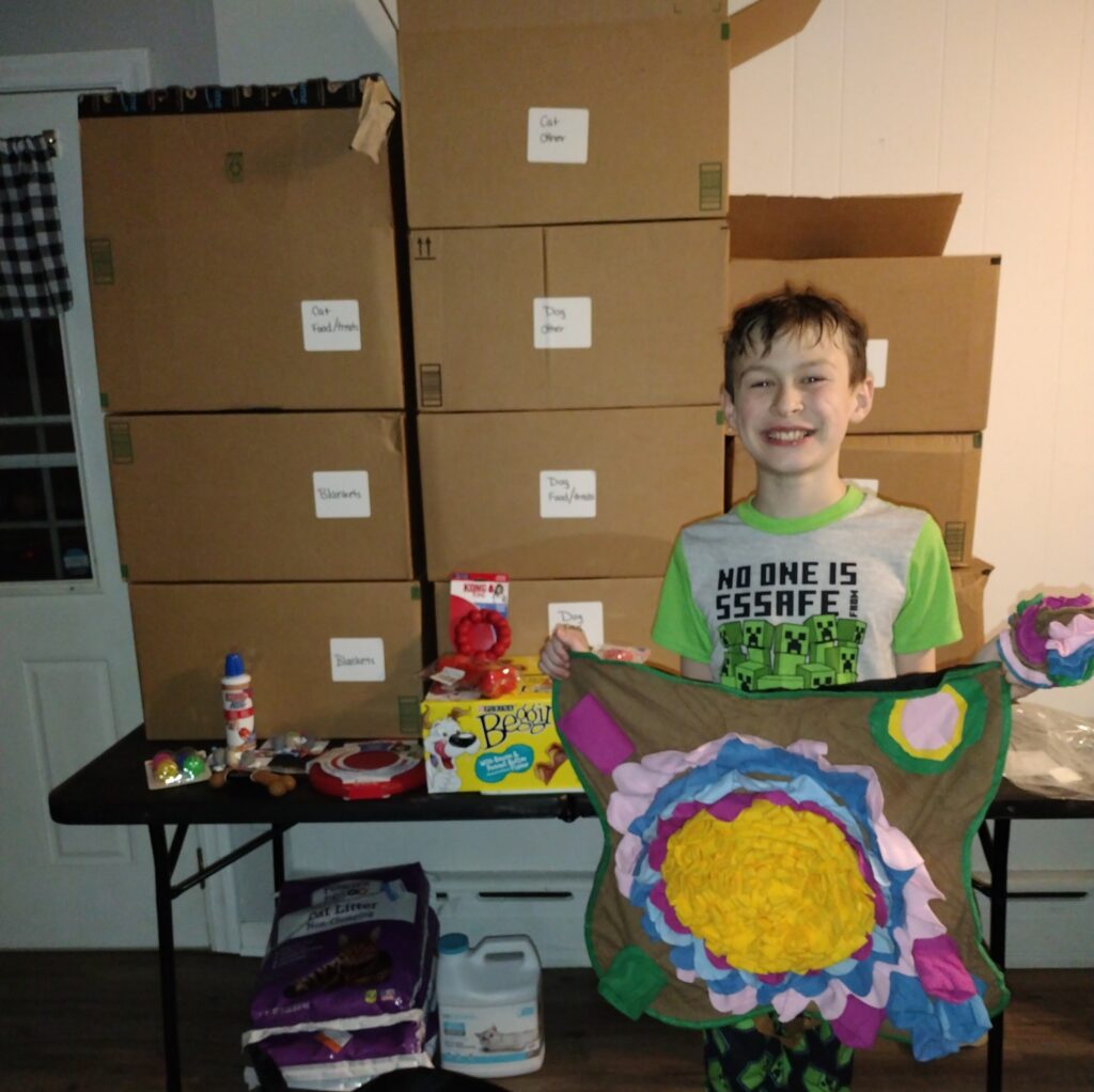 At just ten years old, Chase Novik, who has been a lifelong animal lover, reached out to us at the beginning of 2023 asking what items our animals needed most at the shelter. From there, he rallied together many local businesses to set up donation boxes for ARL, even contacting warehouses like Chewy’s to help collect as many donations as possible. But what started out as the hopes to collect one or two boxes of items quickly turned into a movement in our community, and soon, over 800 items were waiting to be donated to ARL! Chase’s donation drive turned out to be bigger than anyone could have imagined, with hundreds of toys, bags of food, pet supplies, and so much more delivered to our animals this past February.